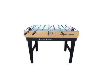 Игровые поля легко менять, они изготовлены из МДФ, ламинированного ПВХ с ярким принтом игровой разметки. Сам стол компактный, не занимает много места, а игрового пространства достаточно, чтобы получить настоящее удовольствие во время игры в домашней обстановке с друзьями или семьёй. Толщина бортиков стола 30 мм, а высота - 12 мм. Конструкция стола устойчива, что актуально для азартных и эмоциональных игроков, особенно при игре в футбол. Прочность и устойчивость ему придают ножки шириной 80 мм и толщиной 13 мм из МДФ с ПВХ покрытием и перекладины толщиной 9 мм.