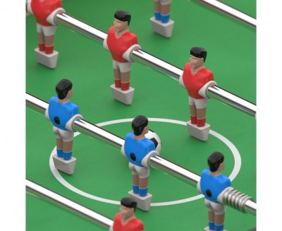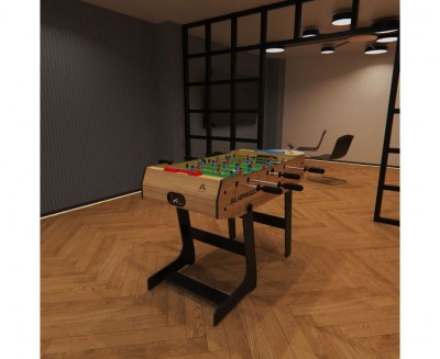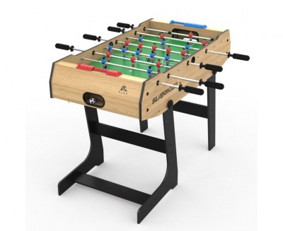 Корпус стола создан из МДФ с ПВХ покрытием. Толщина бортов: 12 мм длинная сторона и 9 мм — короткая. Ножки толщиной 9 мм созданы из тех же материалов. Устойчивая конструкция и прочное ПВХ покрытие — гарантия долгой службы стола даже при частых, эмоциональных играх. Играть в настольный футбол можно сразу после сборки стола. В комплекте есть всё необходимое, включая 2 футбольных мяча диаметром 31 мм